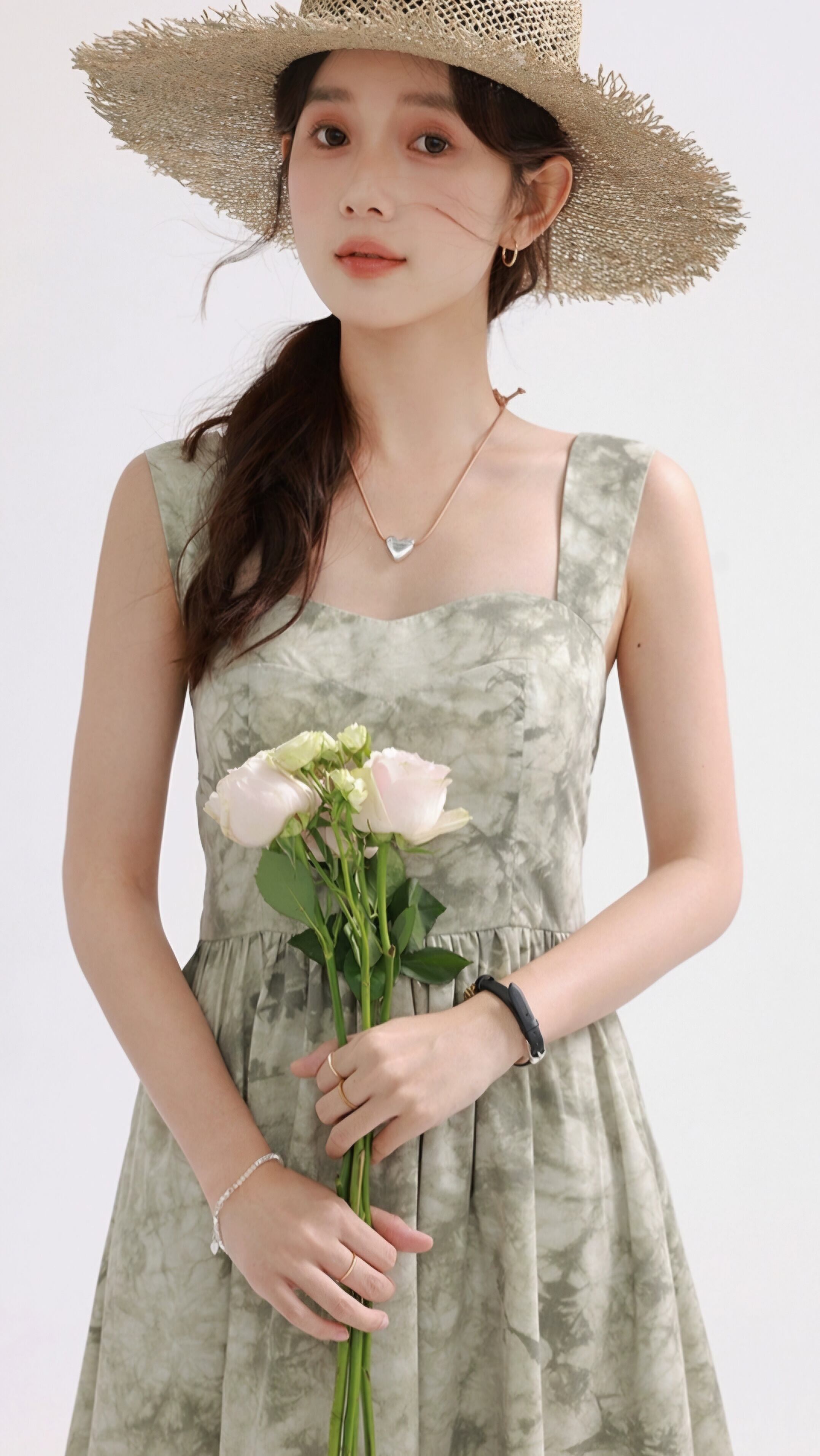 大人女子にぴったりの甘すぎないタイダイプリントが特徴的な、サマードレスです。