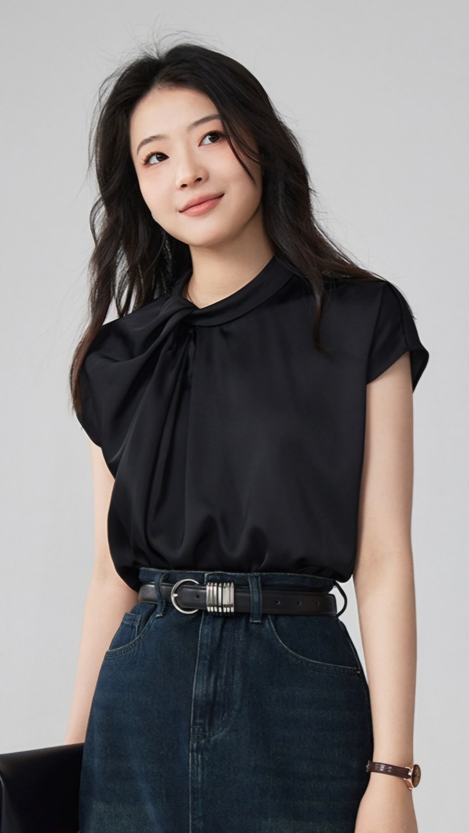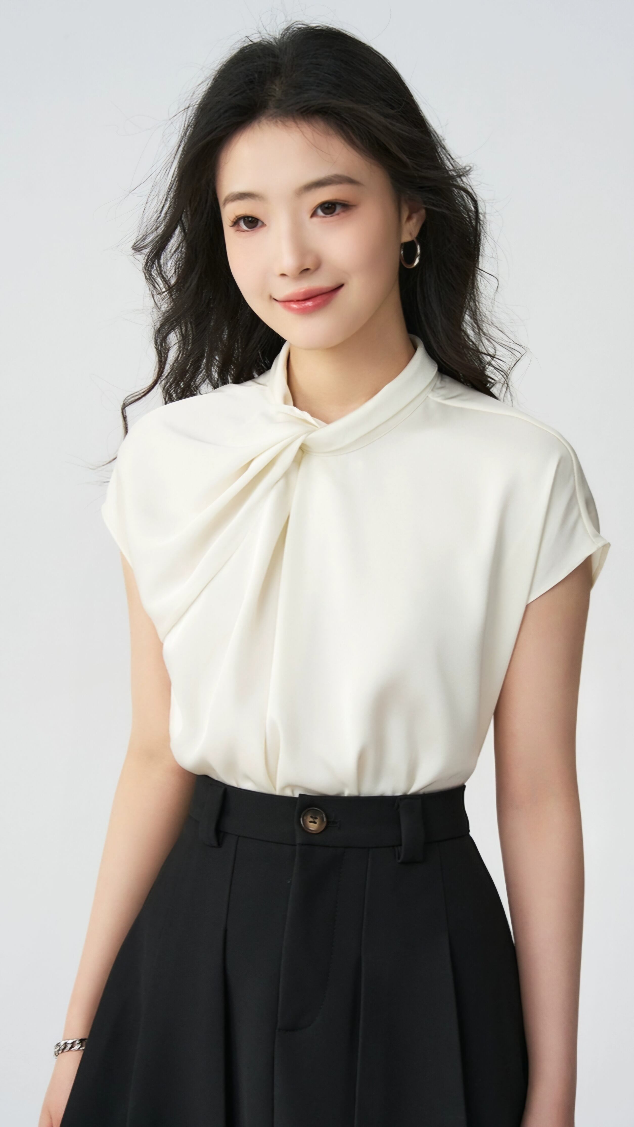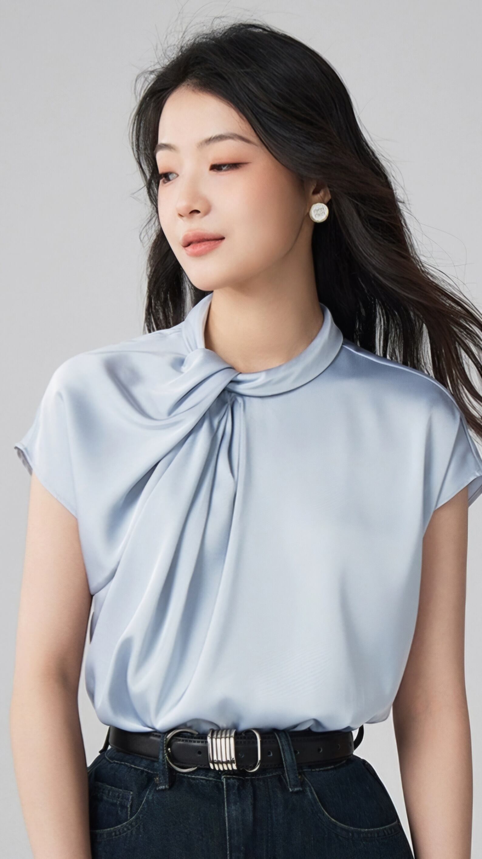 首元のツイストデザインが特徴の、カットソー。艶のあるドレープ生地が、エレガンスを感じさせる一着です。オフィスでのコーディネートにもぴったりで、上品かつスタイリッシュな印象を与えます。