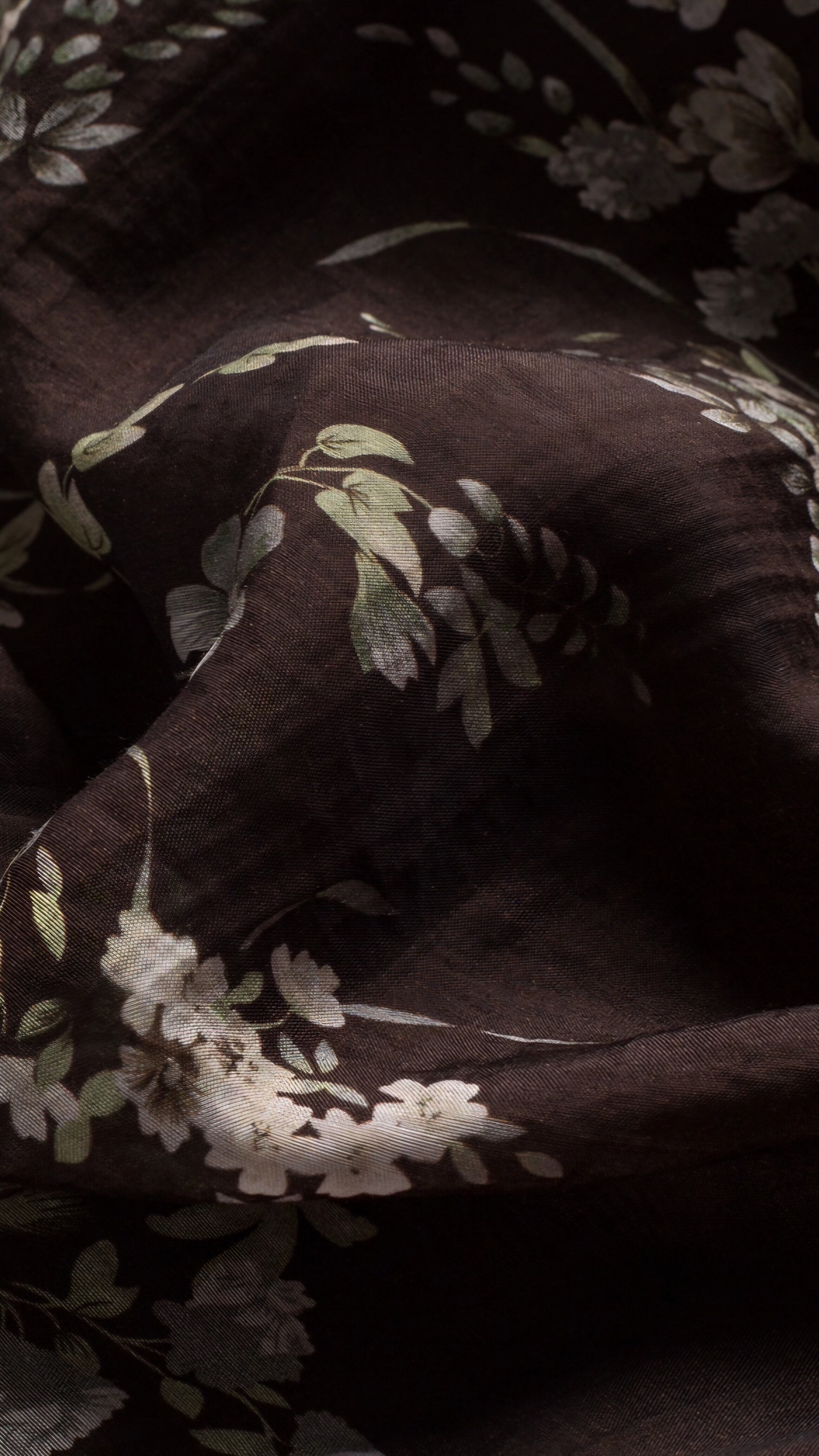 たっぷりとした生地を使用した、フローラルシックフレアスカートです。ブラウンに施されたフラワープリントが魅力的で、甘さを控えたシックなデザインは、大人の女性にぴったりのアイテム。とろみのある生地は、しわになりにくいため、デイリーユースにも最適です。